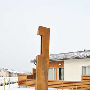 2025 / painted steel / dimensions variable, height approx 4,7 m / in total 9 sculptures in 3 different groups of 3 flowers / Wäinö Aaltonen Museum